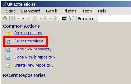 Launch Git Extensions by double-clicking the icon in the Windows Start menu or Start screen.