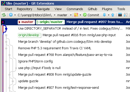 This guide walks you through the process, showing you how to use a git client to transfer code from a public online git repository to your XAMPP server. As an example, this guide assumes that you wish to download the latest version of Slim, a popular PHP micro-framework for Web application development that also has its own Github repository. NOTE: This guide uses Git Extensions, an open source git client that’s available for Windows, Linux and Mac OS, and assumes that you have already downloaded and installed this software. If you don’t already have this, you can download it from the official Git Extensions website, and install it using these instructions.